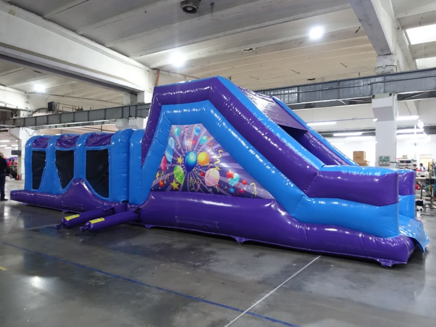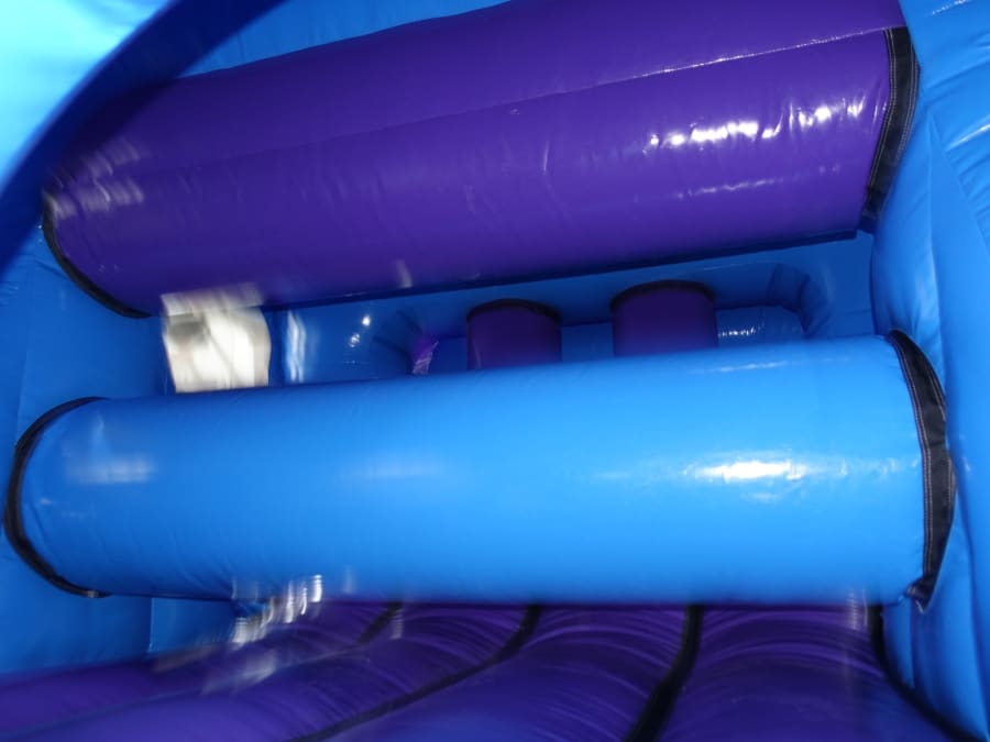 It has several obstacles to go thought round and under at the start and a up and over slide at the end.