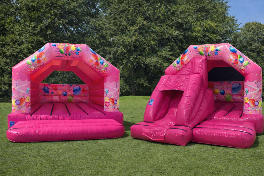 Bring the wow factor to your party with our Pink Party Package, featuring a classic pink bouncy castle and a bouncy castle with slide combo! Bursting with bright pink colour and cheerful party balloon graphics, this package is perfect for birthdays, princess parties, and any celebration that calls for fun, energy, and smiles.